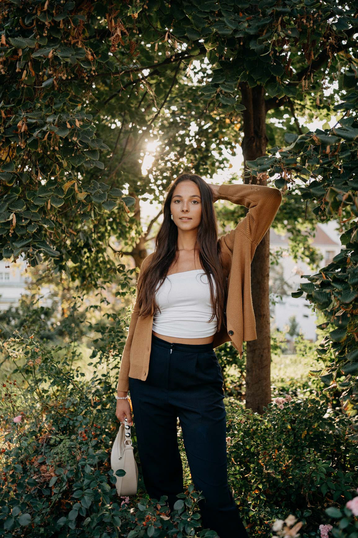 Tahle série vznikla úplně přirozeně – žádné přehnané pózy, jen pár hlubokých nádechů, pár kroků po dlaždicích a okamžiky, které působí tak, jak se cítí. Mám ráda, když fotky vyprávějí příběh beze slov – když se v nich odráží nejen outfit nebo prostředí, ale i nálada toho dne.